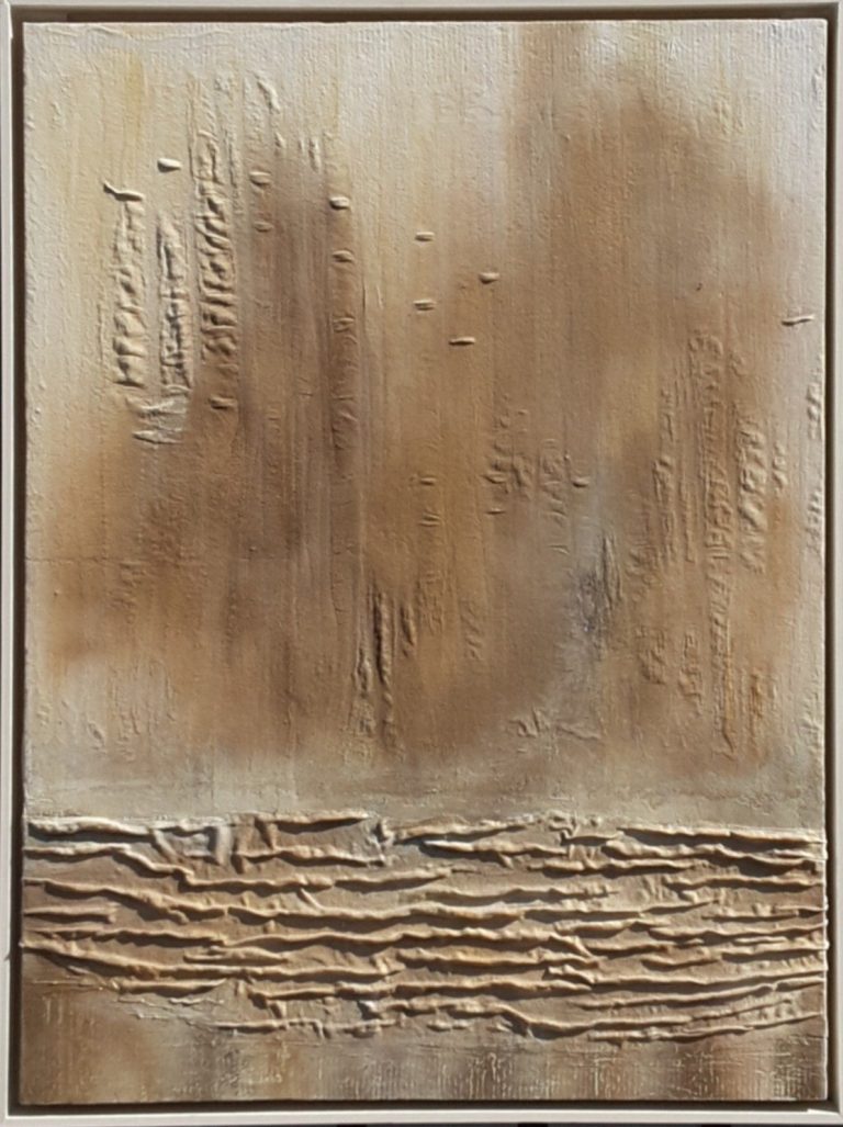 Metall/Lackfarben und Acryl-Farben auf Dämmplatten.